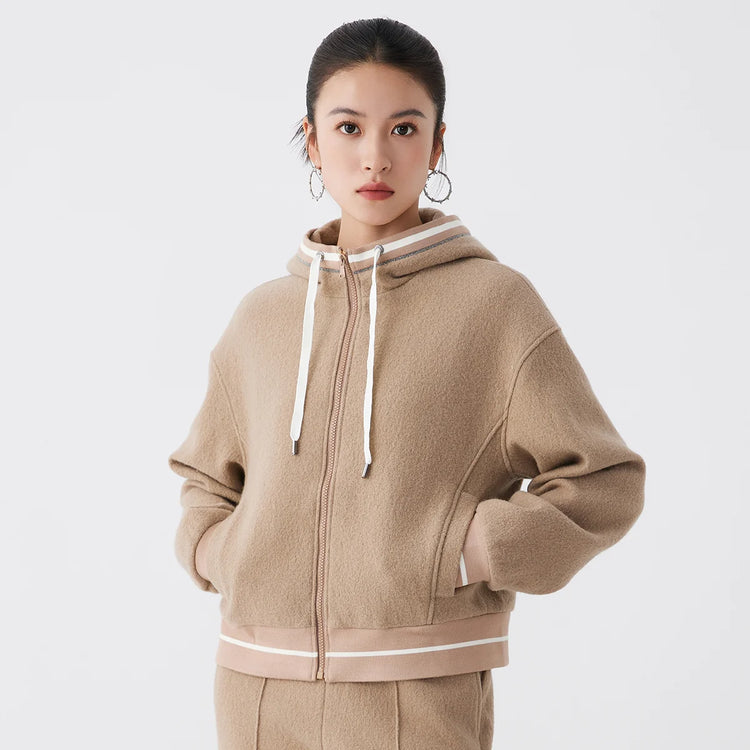 K2675W High quality luxury brand women's 100% merino wool pullover hooded sweatshirt hoody