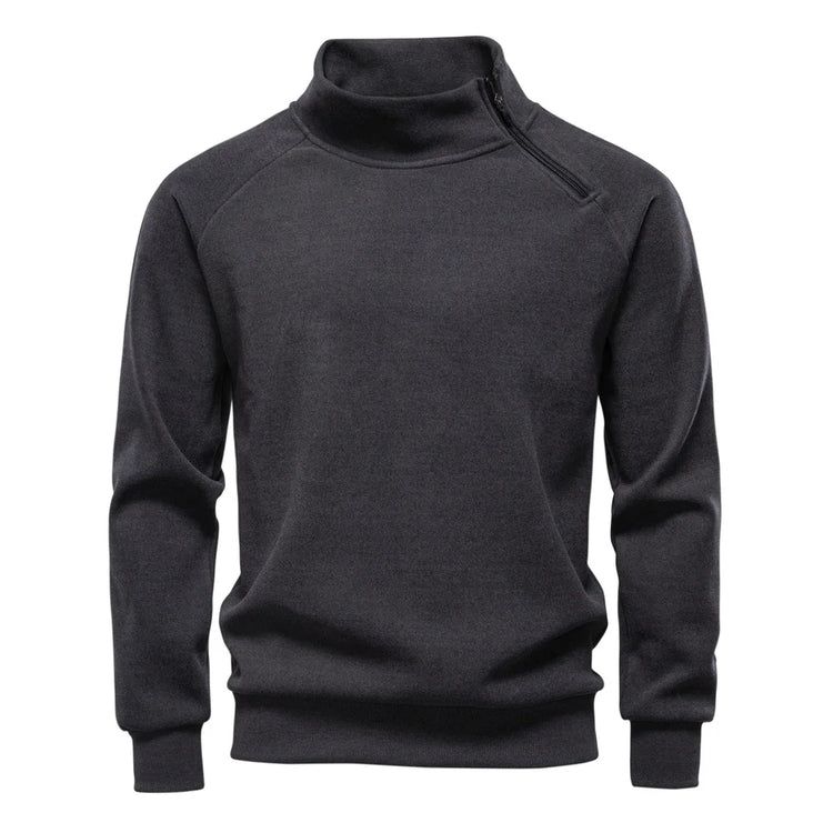 Men's New 2025 Autumn & Winter European Size Pullover Hoodie with Diagonal Zipper, Fleece-Lined, Thickened Stand Collar, Trendy