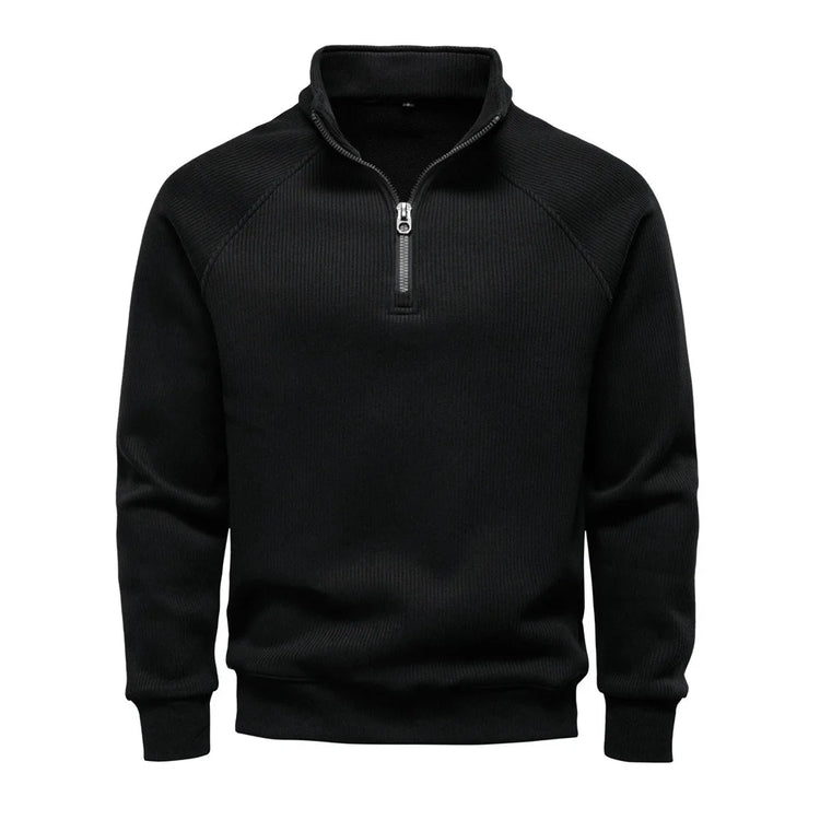 New Autumn & Winter Men's European Size Half-Zip Pullover Sweatshirt, Trendy & Versatile Stand-Collar Fleece-Lined Men's Jacket