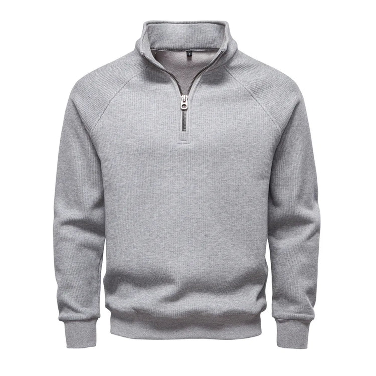 New Autumn & Winter Men's European Size Half-Zip Pullover Sweatshirt, Trendy & Versatile Stand-Collar Fleece-Lined Men's Jacket