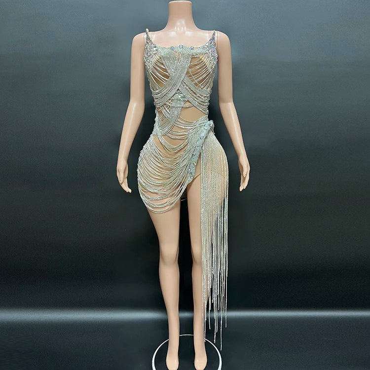 Novance Mini Dresses Women 2023 Bling Laser Diamond Fringed Dress Plus Size Women'S Clothing Romantic Vestidos Casuales Sexy