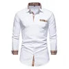 RNSHANGER Autumn Plaid Patchwork Formal Shirts for Men Slim Long Sleeve White Button up Shirt Dress Business Office Dress Shirts