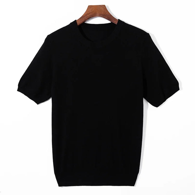 Summer Classic Short Sleeve Men Knitwear Silk Wool blend Sweater O-Neck Loose Cool Quality Business Pullover Basic Clothing Tops