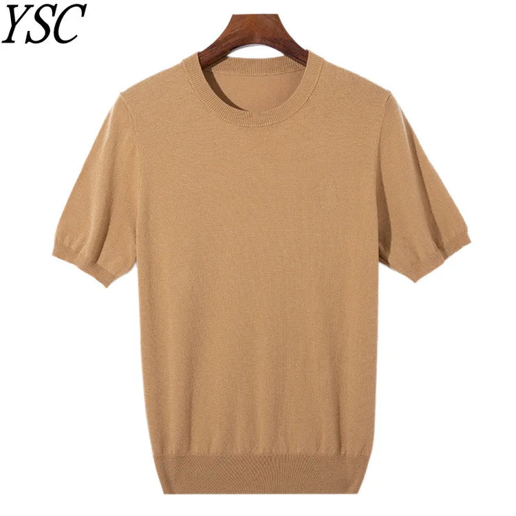 Summer Classic Short Sleeve Men Knitwear Silk Wool blend Sweater O-Neck Loose Cool Quality Business Pullover Basic Clothing Tops