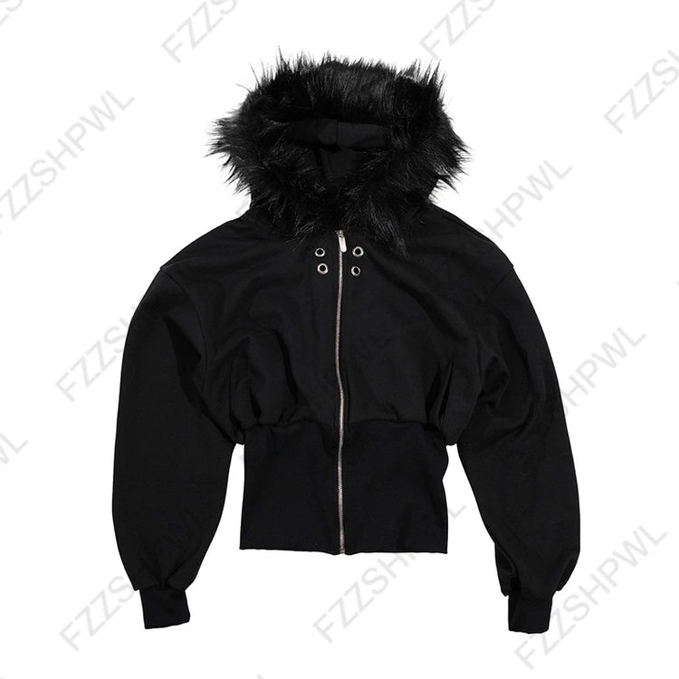 Y2K Aesthetic Women's Autumn Winter Fur Collar Sweatshirt Harajuku Gothic Punk Rock Hottie Sweatshirt Jacket Emo Girl Streetwear